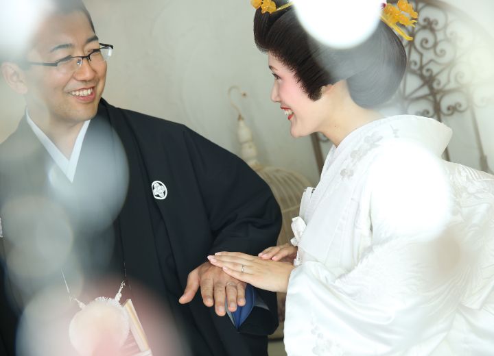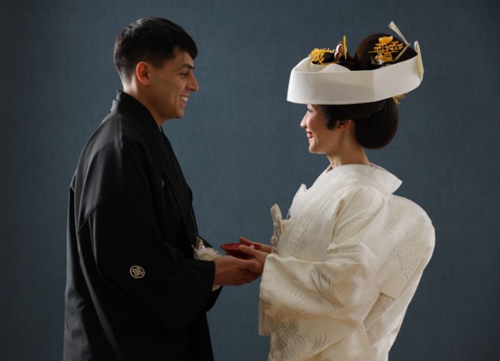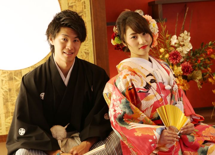 新婦はウェディングドレスやカラードレス、白無垢、色打掛、引振袖、新郎はタキシードや紋付き羽織袴の中からお好みの衣装をお選びいただき、ヘアーメイクや撮影を行います。