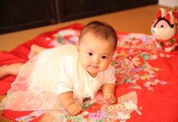 お子様の生後100日目を祝う百日祝や、お子様が生まれてから最初に迎える初節句(男の子は5月5日のこどもの日、女の子は3月3日の雛祭り)の記念撮影を行います。