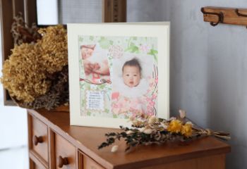 生後間もないお子様を、毎月1回撮影し、1年間の成長過程を記録したアルバムを作成します。毎月異なる季節の風物詩を設置したスタジオで、お子様の成長過程を撮影することが可能です。